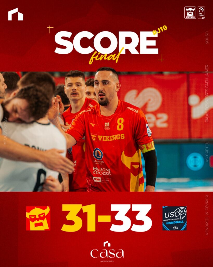Fin de l’invincibilité à la maison pour les #Vikings qui s’inclinent ce soir face à Créteil.