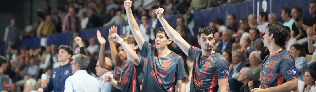 Pour le quart de finale aller d'European League, l'entame est excellente à l'image des trois premiers arrêts de Desbonnet dont un penalty sur Vorkapic (1-0, 5e). L'avantage est aux défenses dans ce premier quart d'heure (2-2, 11e). Les attaques sont en difficulté. Dans le combat, le MHB impose petit à petit son impact et Moraes marque le + 2 (5-3), et Villeminot le + 3 (6-3) et Monte finit le 4-0 (7-3, 17e). En défense, Srna, Monte, Moraes et Porte ferment le bloc central.